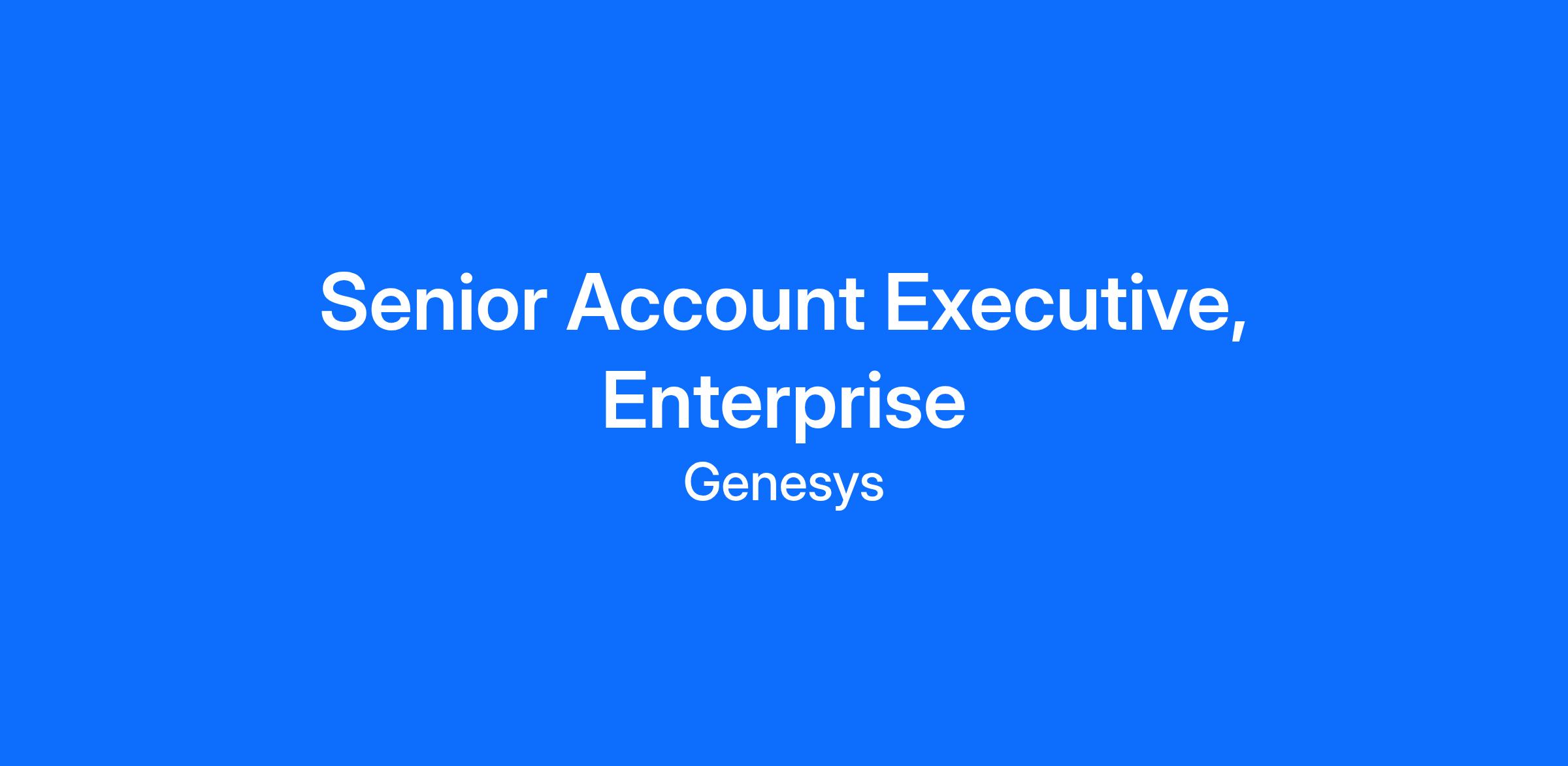 Genesys has forged a new market sector and we are seeking extraordinary Account Executives who can be the catalyst for our continued growth and success. With personal impact and gravitas, you will be comfortable around the C suite customers. With a consultative selling approach, you will be able to position the full Genesys portfolio to the customer without effort.