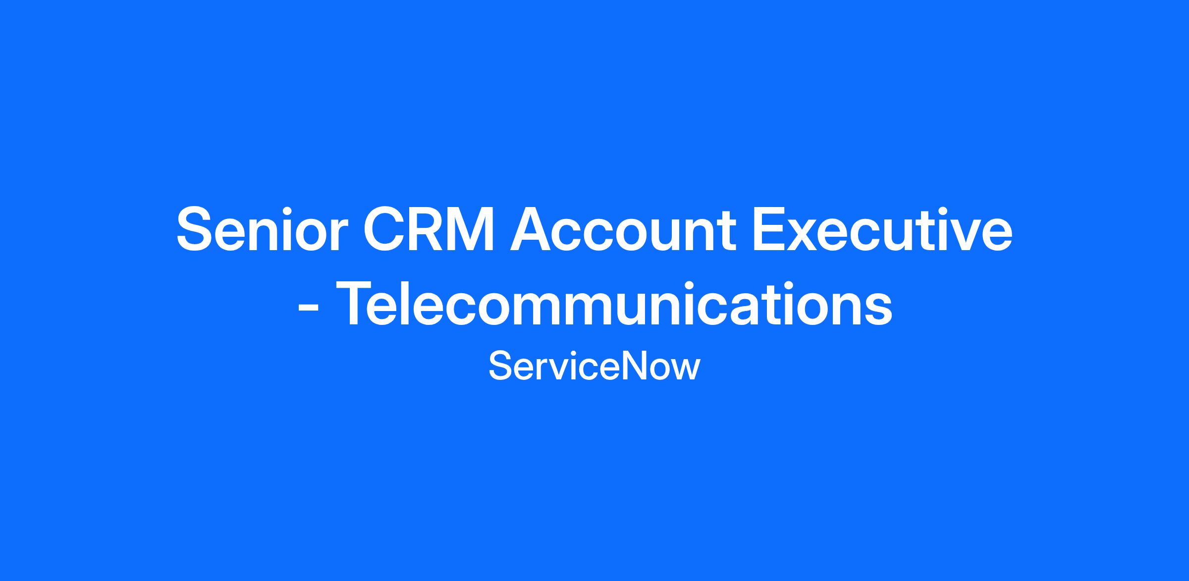 Sr. CRM Account Executive will oversee market success of ServiceNow's Customer Workflow products. These products are built on our market leading Service Management platform and create a single source of truth that allows enterprise processes to execute with uniform information.