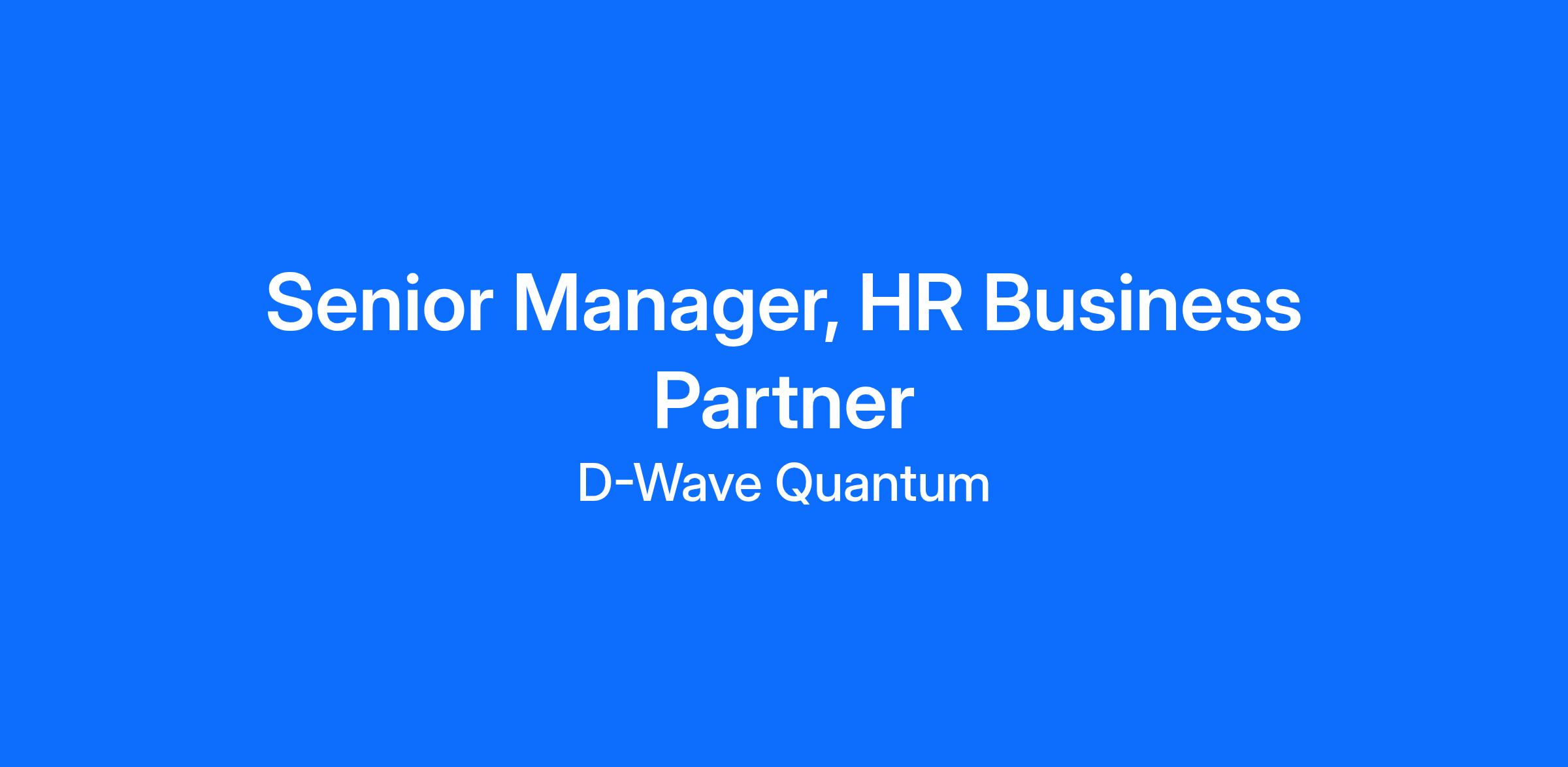 D-Wave is seeking a Senior Manager, HR Business Partner to support highly technical, fast-moving organizations across the business.