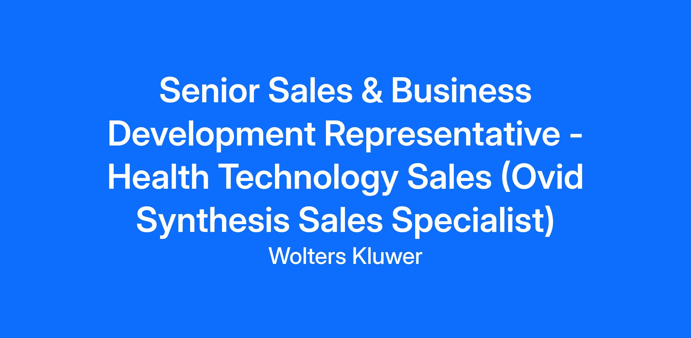 We have an exciting Sales role within our Health Research business with Ovid Technologies as a Senior Sales and Business Development Representative for the EBP, Research and Quality Improvement Workflow solution - Ovid Synthesis.