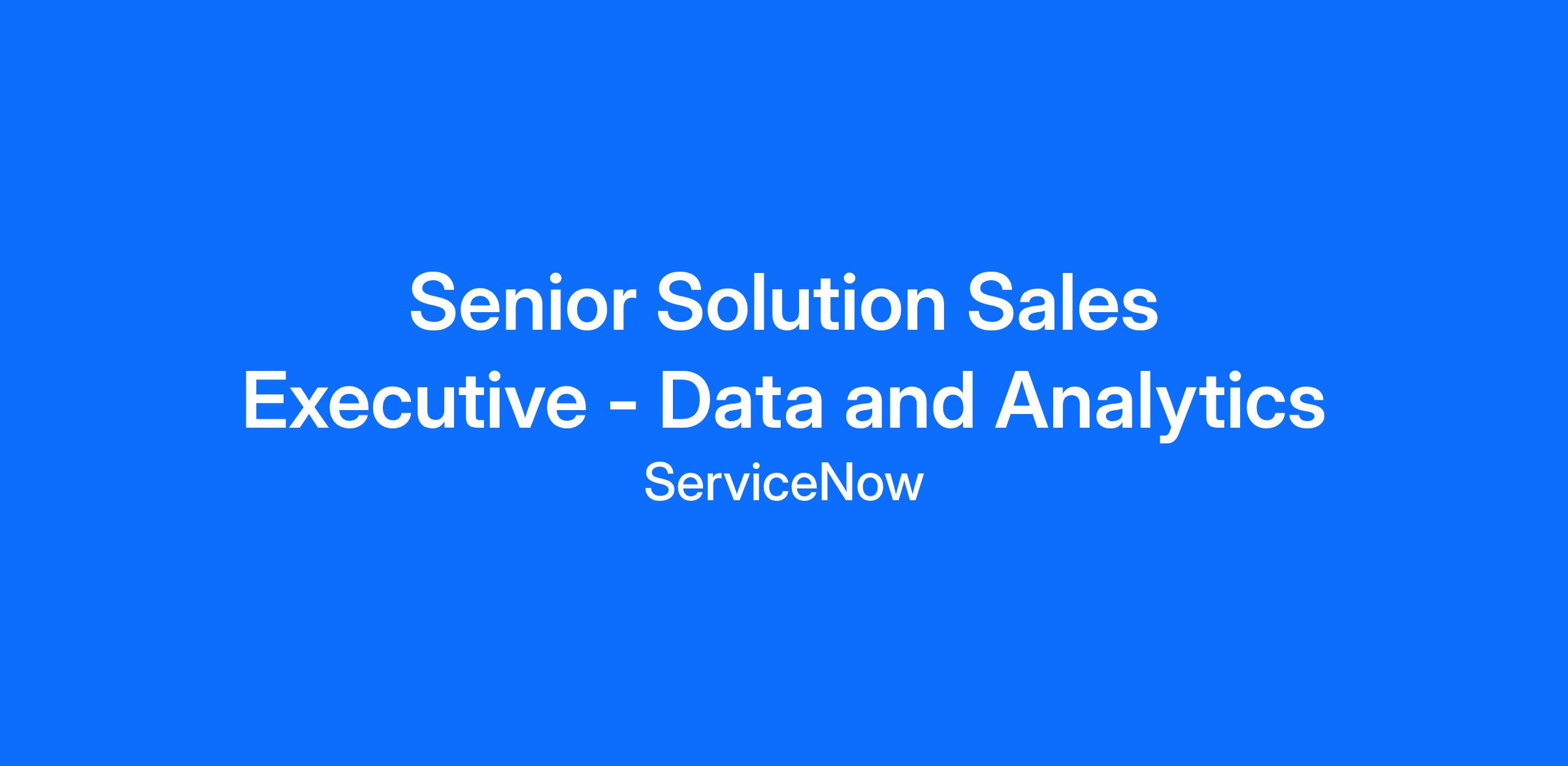 The Solution Sales Executive will oversee market success of ServiceNow's Data Fabric workflows and Analytics products. These products are built on our market leading Service Management platform and create a single source of truth that allows enterprise processes to execute with uniform information.
