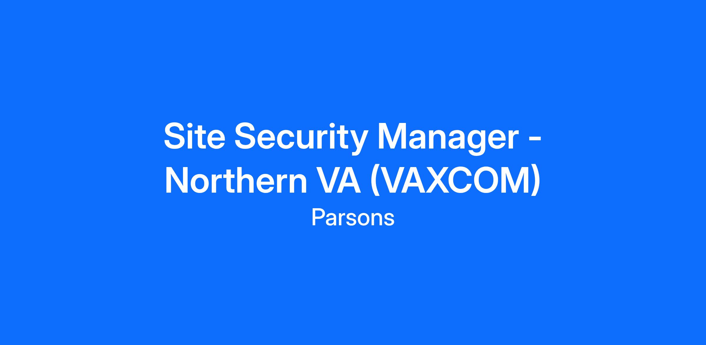 Vaxcom Services LLC (a Parsons company) is looking for a cleared (Top Secret with polygraph) Site Security Manager to join our team! In this role you will get to lead and manage the daily operations of a team of armed security guards at a sensitive site.