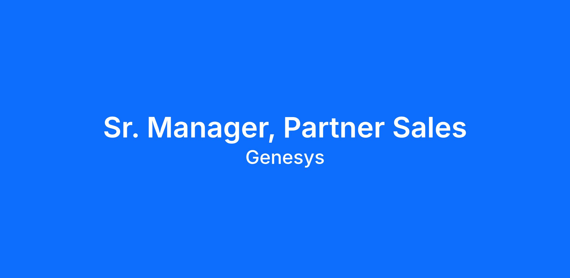 Sr. Manager, Partner Sales