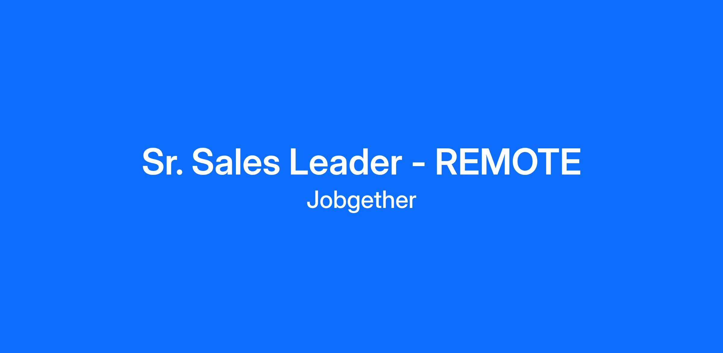 Sr. Sales Leader - REMOTE