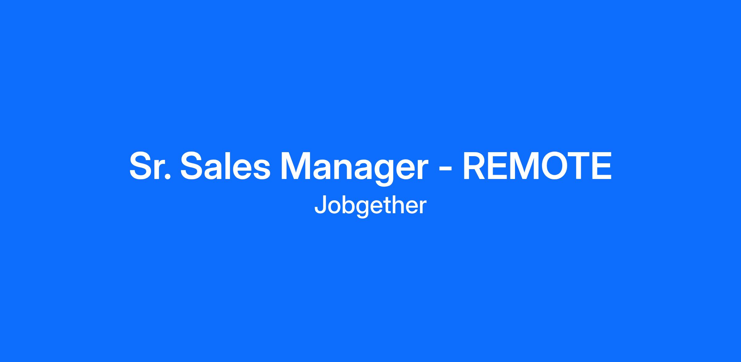 Sr. Sales Manager - REMOTE