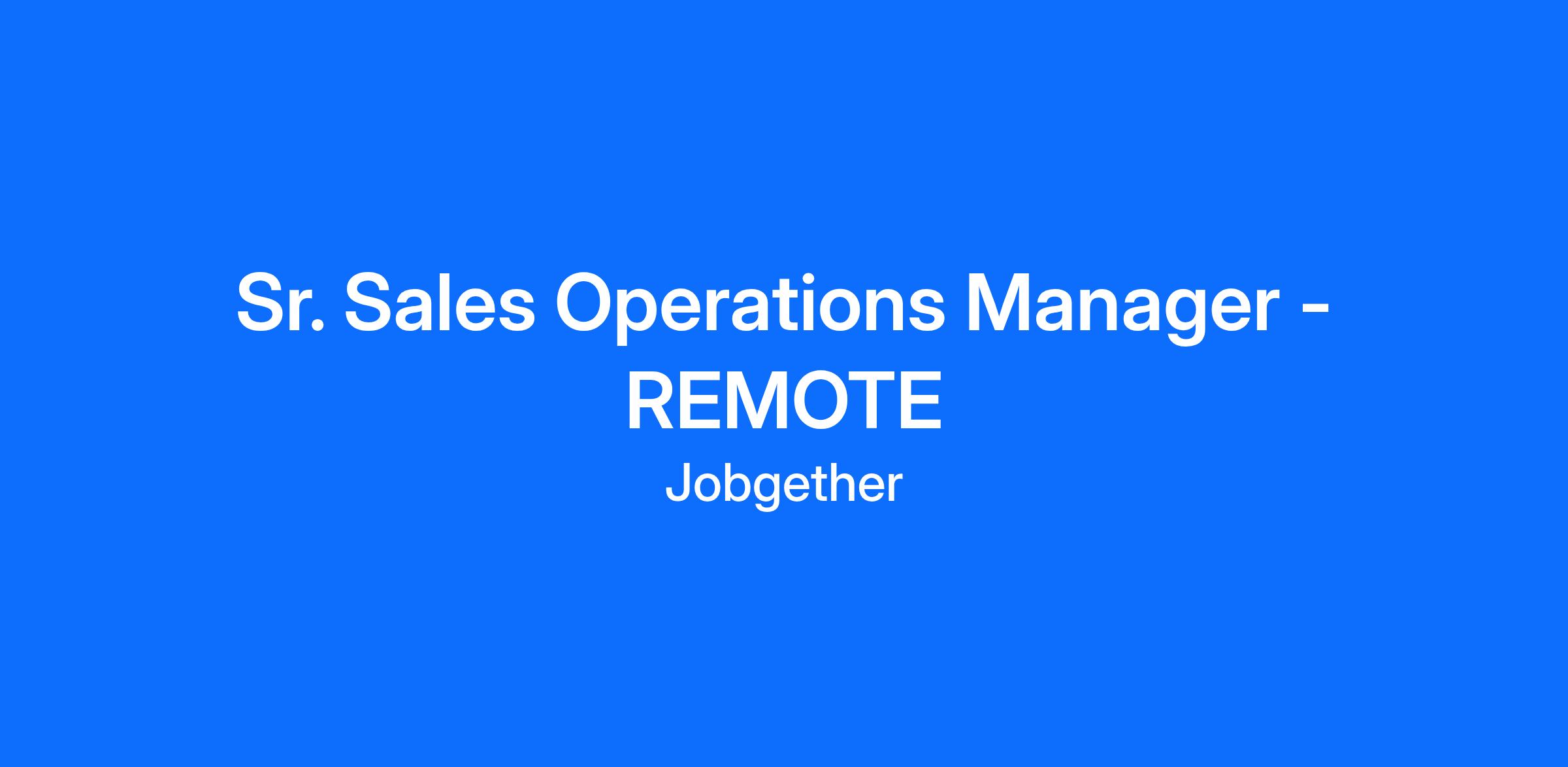 Sr. Sales Operations Manager - REMOTE
