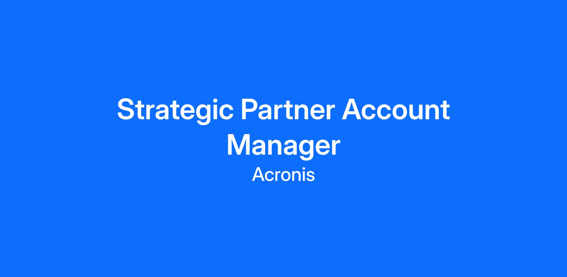 As a Strategic Partner Account Manager, you will leverage your expertise in Account Management with a deep passion for Data Protection and Cyber Security. Your primary focus will be driving ARR growth through strategic account planning with dedicated partners, increasing adoption of new services, and fostering a world-class partner experience that sets Acronis apart. In this role, you will work closely with service provider sales leaders to expand revenue, grow the customer base, and enhance market share within their business. This position is suited for a highly skilled seller with strong strategic vision and tactical sales execution, capable of balancing immediate sales goals with long-term strategic initiatives.