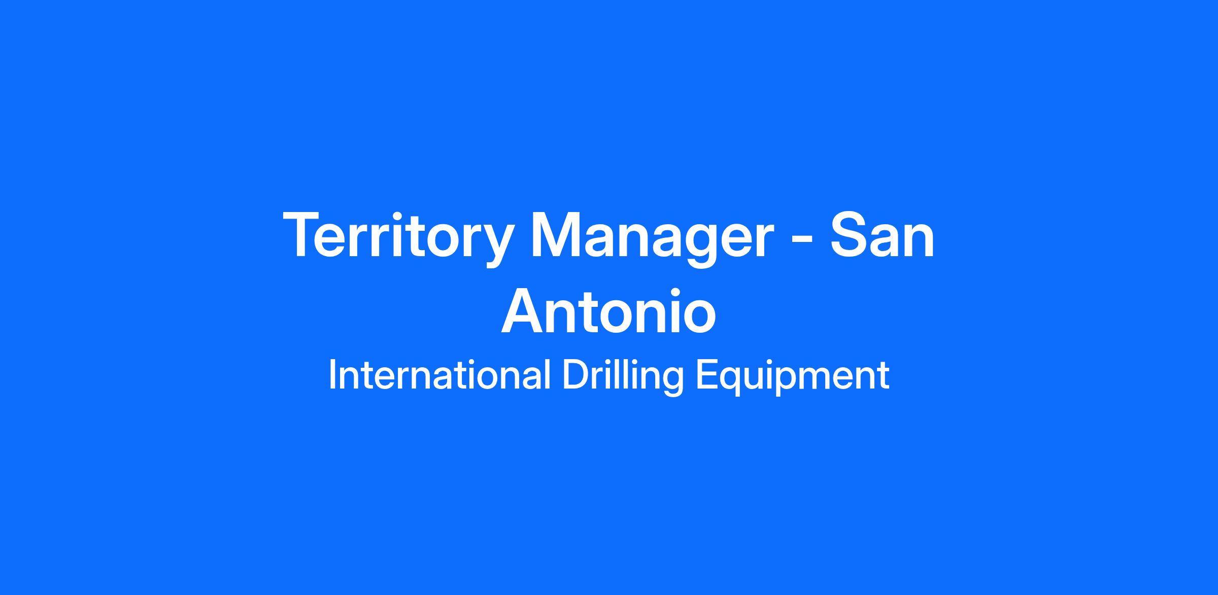 International Drilling Equipment is seeking a Territory  Manager to join our team.
