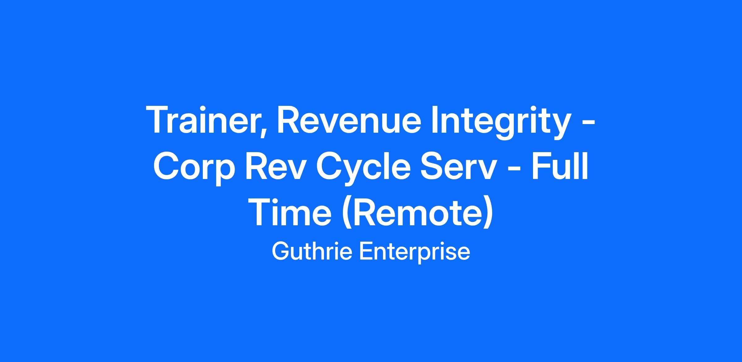 The Trainer, Revenue Integrity is responsible for developing and delivering training programs that support accurate and compliant revenue cycle processes. This role ensures that staff across departments understand and adhere to revenue integrity standards, including coding, billing, documentation, and compliance requirements. The trainer collaborates with subject matter experts to create educational materials and evaluates training effectiveness to drive continuous improvement.