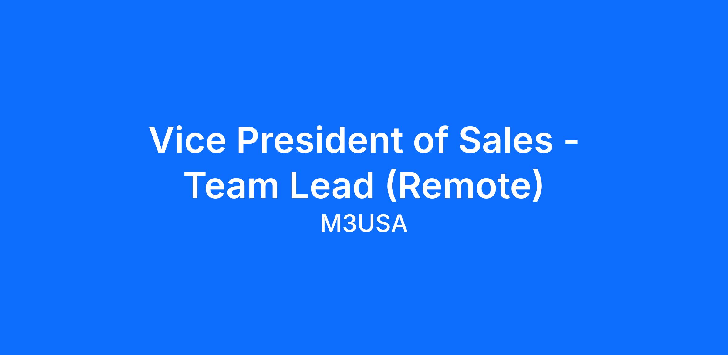 Due to our continued growth, we are hiring for a VP of Sales- Team Lead at M3 MI, an M3 company.