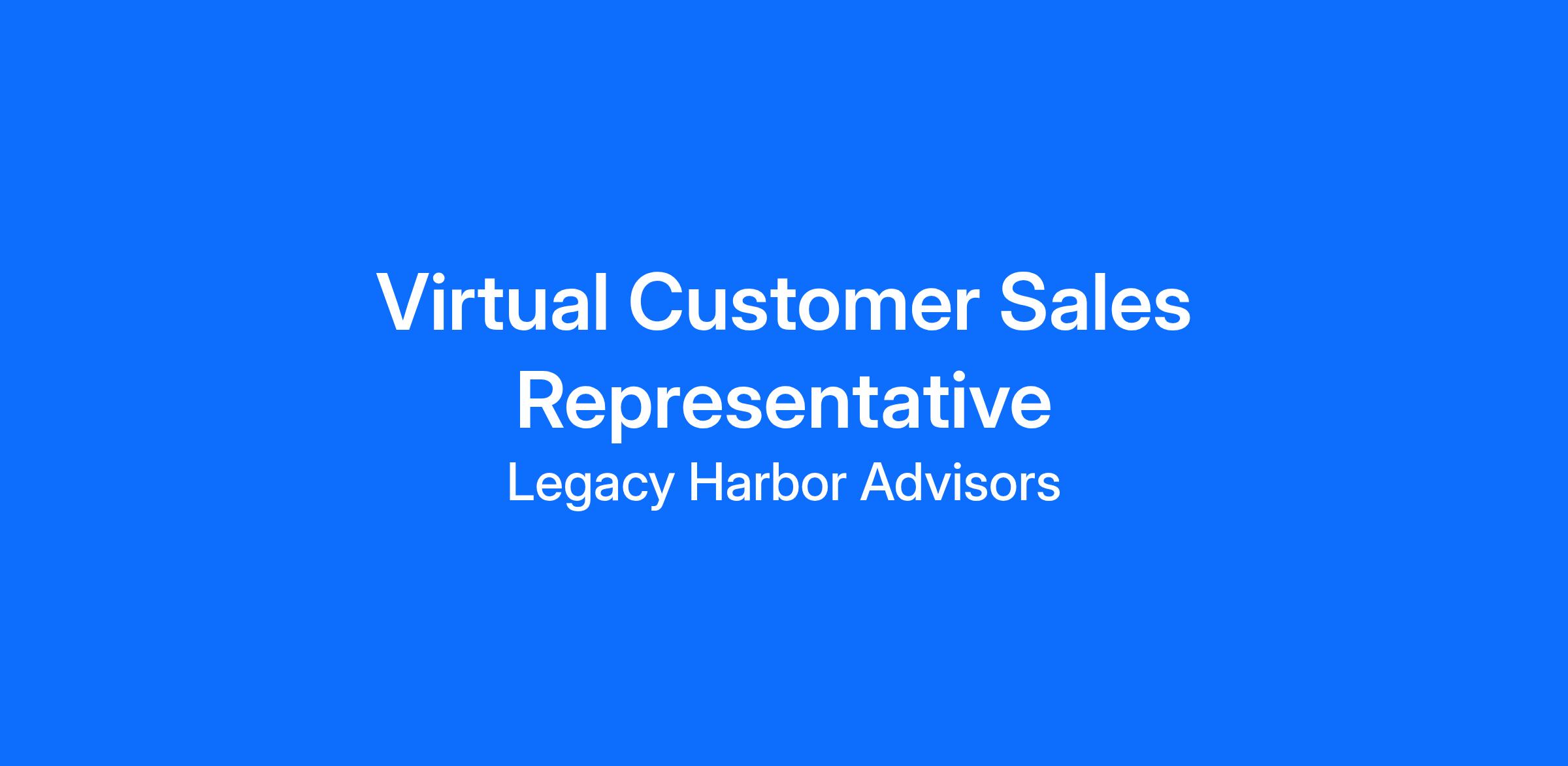 Are you an ambitious self-starter looking for a career that rewards drive, discipline, and performance? At Legacy Harbor Advisors, we empower independent professionals to achieve financial freedom while helping clients secure their financial futures. As a Customer Sales Representative, you’ll enjoy the flexibility of working from anywhere, the satisfaction of helping others, and the potential to build a business that truly reflects your hard work.